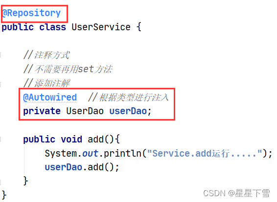 第二步 在service注入dao对象,在 service类添加dao类型属性,在属性上面使用注解