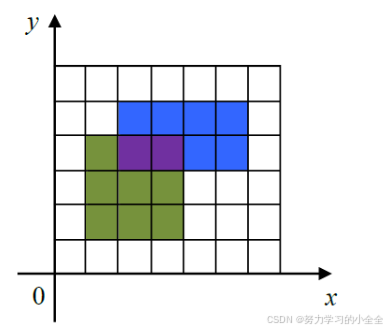 第二个矩形是 (2,3) 到 (6,5),用蓝色和紫色表示。