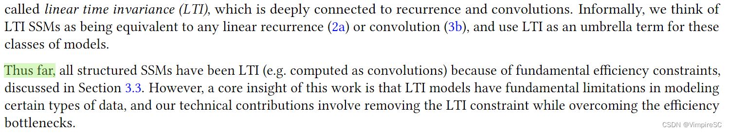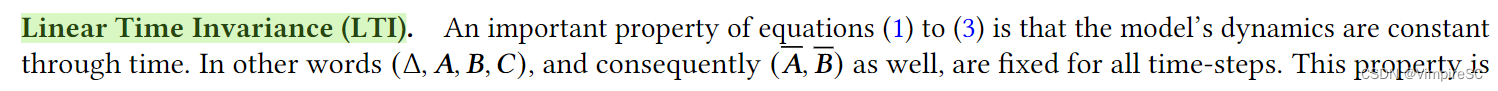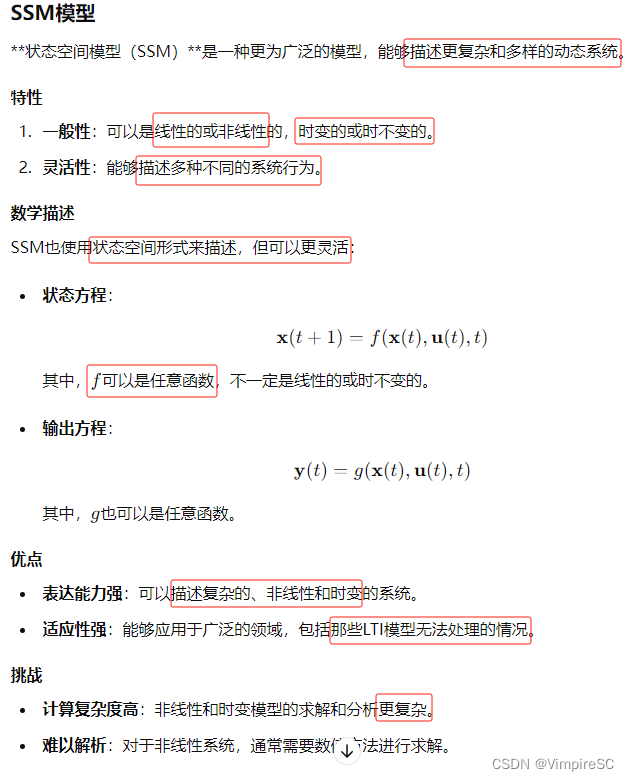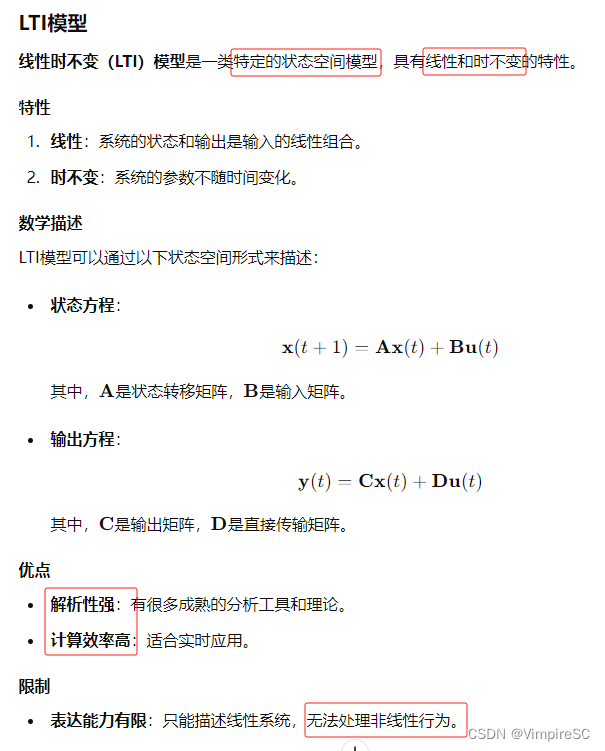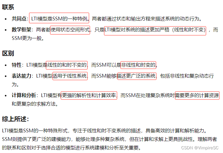 LTI模型为SSM模型特例,LTI模型为线性时不变,SSM为非线性时变。