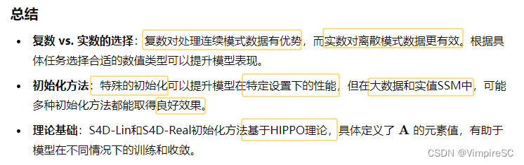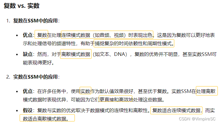 探讨了SSM(State Space Models)在使用复数和实数时的表现差异,以及初始化方法对模型性能的影响。