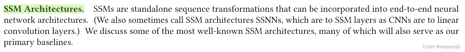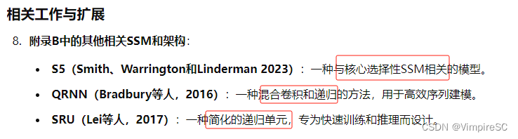 - 提到其他密切相关的SSM和架构,并将在扩展的相关工作中进一步讨论这些方法。