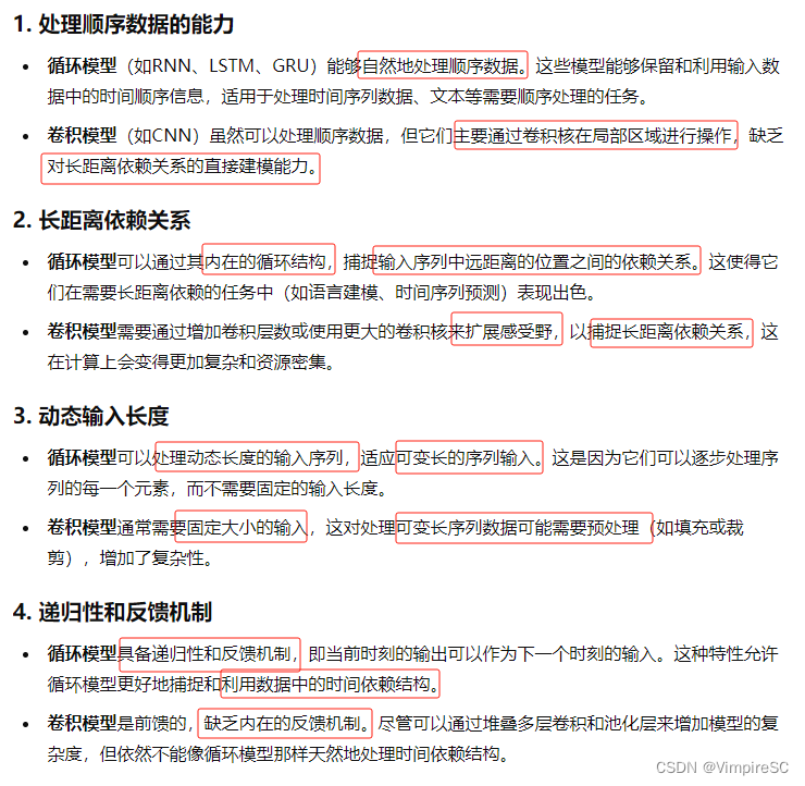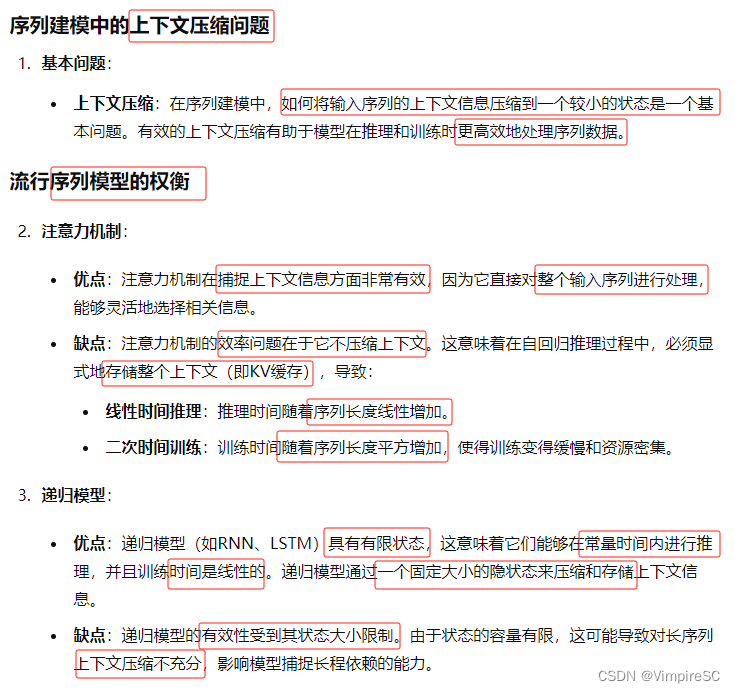 2.递归模型:在效率上有优势,但其有限的状态容量可能限制其对长序列的处理能力。