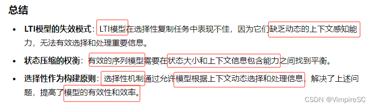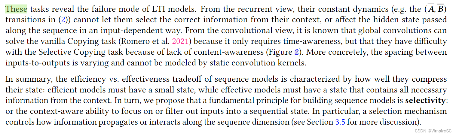 深入探讨了序列模型的局限性,特别是线性时不变(LTI)模型在处理某些任务时的失效模式,并引出了一种新的构建原则,即选择性。