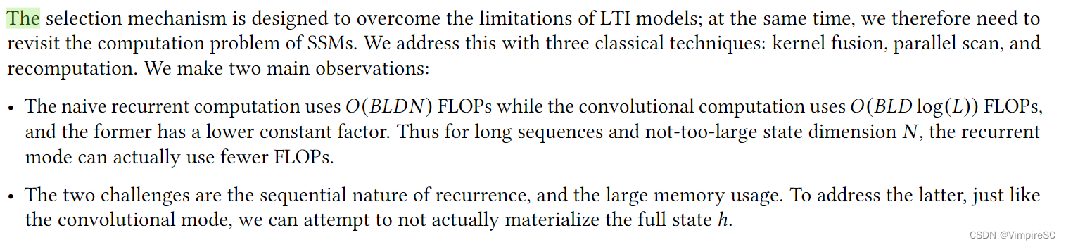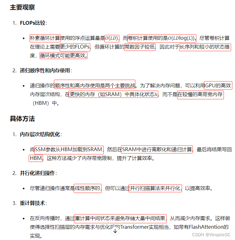 3.3节:因为时变SSM不能卷积,改进硬件提出硬件感知算法