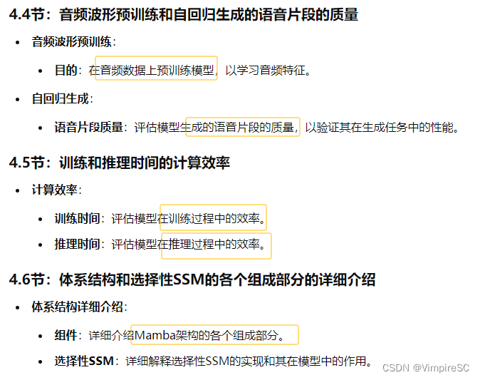 介绍了第4节中的实验和评估内容,涵盖了多个方面的任务和测试,以验证Mamba架构和选择性SSM的性能和效率。