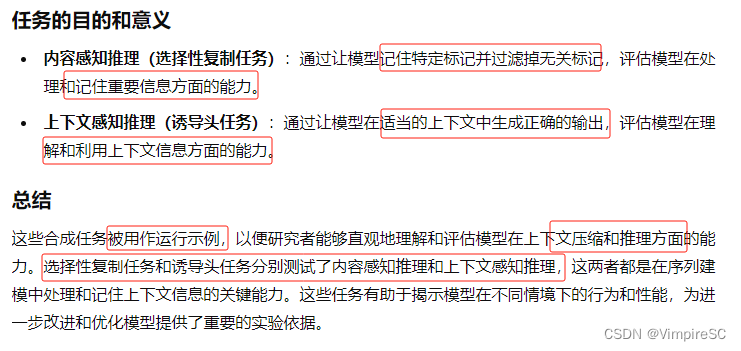 这些任务被设计来测试和展示模型在不同情况下处理和记住上下文信息的能力。