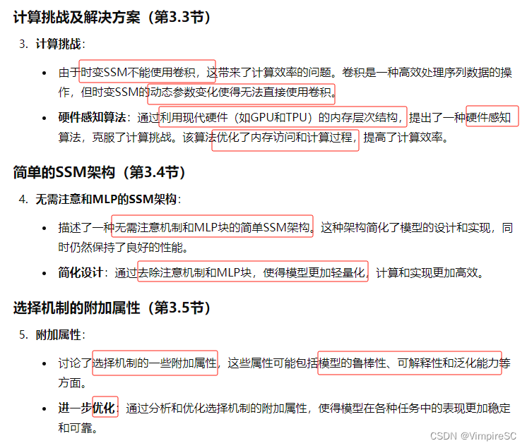 详细探讨了克服线性时不变(LTI)模型的局限性以及优化选择性状态空间模型(SSM)的计算问题的具体方法。