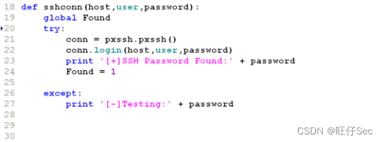 第五步,定义函数sshconn,该函数的作用为尝试连接SSH服务器