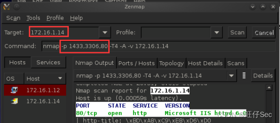 再次使用题目提到的参数-p 1433,3306,80进行扫描
