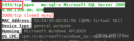 2.通过本地PC中渗透测试平台BT5对服务器场景server2003进行系统服务及版本扫描渗透测试,并将该操作显示结果中数据库服务对应的服务端口信息作为FLAG提交;