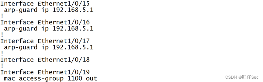 在15-17端口上配置保护arp,保护网关不被欺骗。