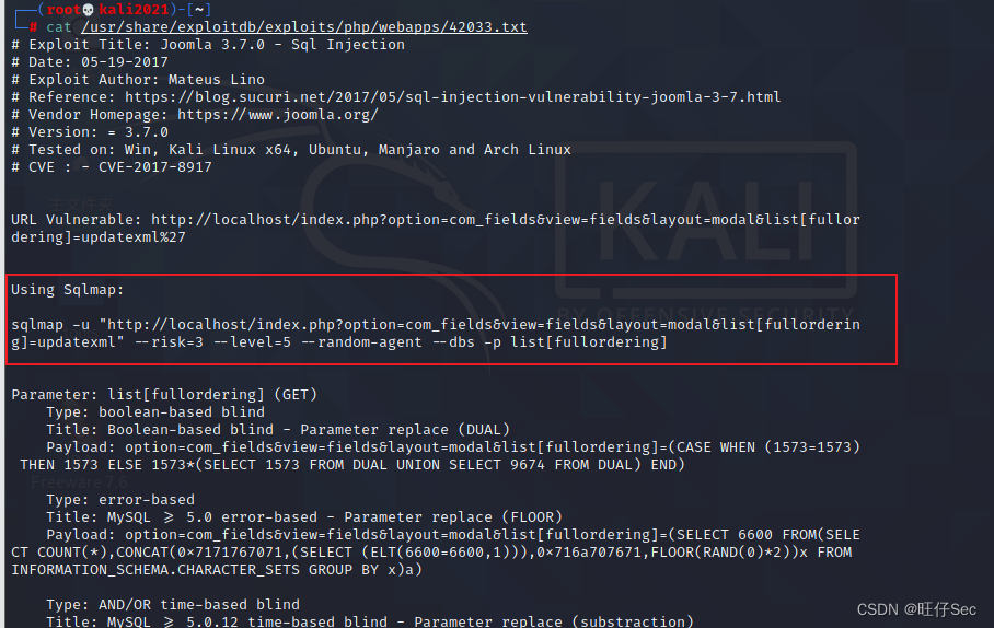 我们可以在kali中搜索这个版本的exp,发现有一个注入的,直接查看试一试