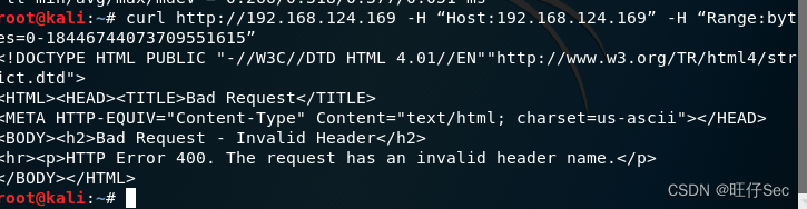 然后使用使用命令curl测试,测试:curl http://192.168.124.169 -H “Host:192.168.124.169” -H “Range:bytes=0-18446744073709551615”