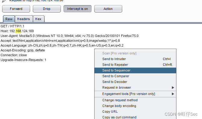 使用BurpSuite发送测试代码,方便观察回包的数据,打开桌面上的burpsuite,并开启浏览器代理,再次访问目标的默认站点页面,右键点击空白处选择Send to Repeater