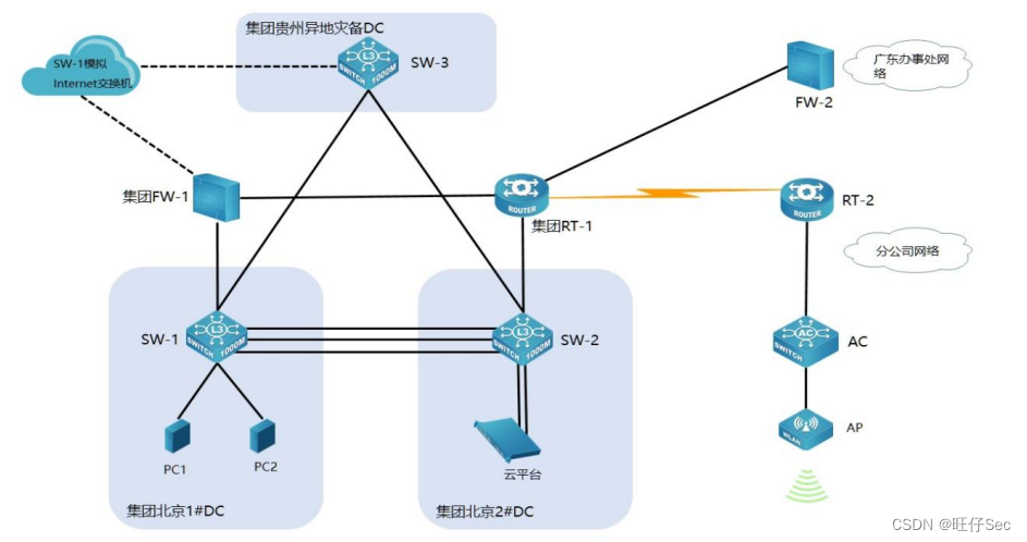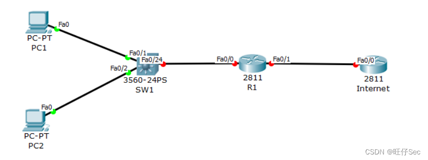 | SW-1模拟Internet交换机 | E1/0/19 | SW-3 | E1/0/19 |