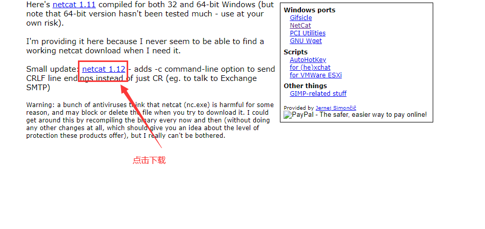 netcat(nc)下载地址:netcat 1.11 for Win32/Win64