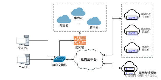 1.竞赛使用集群模式进行,比赛时给每个参赛队提供独立的租户与用户,各用户的资源配额相同,选手通过用户名与密码登录竞赛私有云平台,创建云主机进行相应答题,2名参赛选手的账号密码相同;