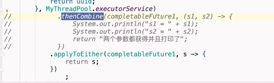 thenCombion : 两个任务都执行完了,可以接受两个任务的参数,并且thenCombion 可以返回值