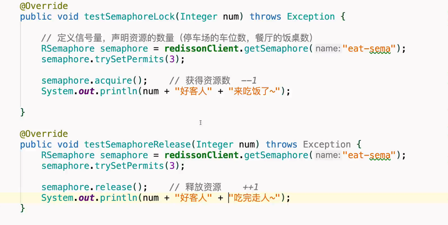 注意:信号量一旦设置完成,会一直存在我们redis中,数值是不会更改的,对同一个key做信号量更改的话,需要删除再去设置