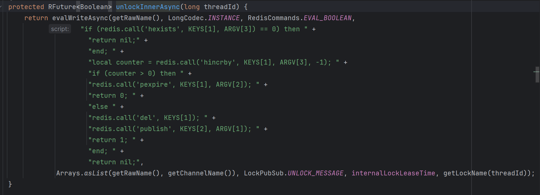 此方法内部本质上也是一个timer的定时器,future.whenComplete((res , e)->{})为定时异步编排任务回调函数,e为异常信息,res为定时异步编排任务返回值,返回值为true就是lua脚本返回1,则继续递归,false则取消