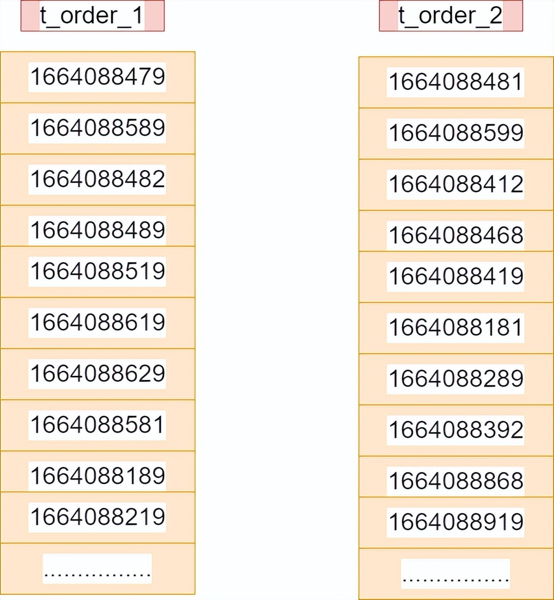 假设现在t_order_1和t_order_2中的数据如下: