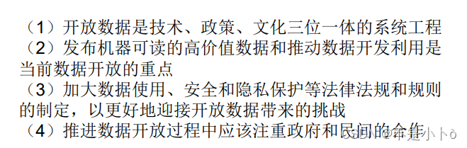 二是开放,技术上的开放,即以机器可读的标准格式开放;法律上的开放,即不受限制的明确允许商业和非商业利用和再利用;