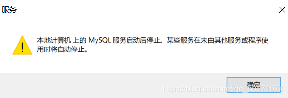 这篇文章是本人第一次发表的博客,比较简陋,主要是记录一下自己使用MySQL的一次踩坑经历,我的MySQL安装好后,使用一周后的同一时间必定报连接失败,然后查找发现是MySQL本地服务没有启动(应该是一段时间会自动关闭?),手动启动该服务项提示: