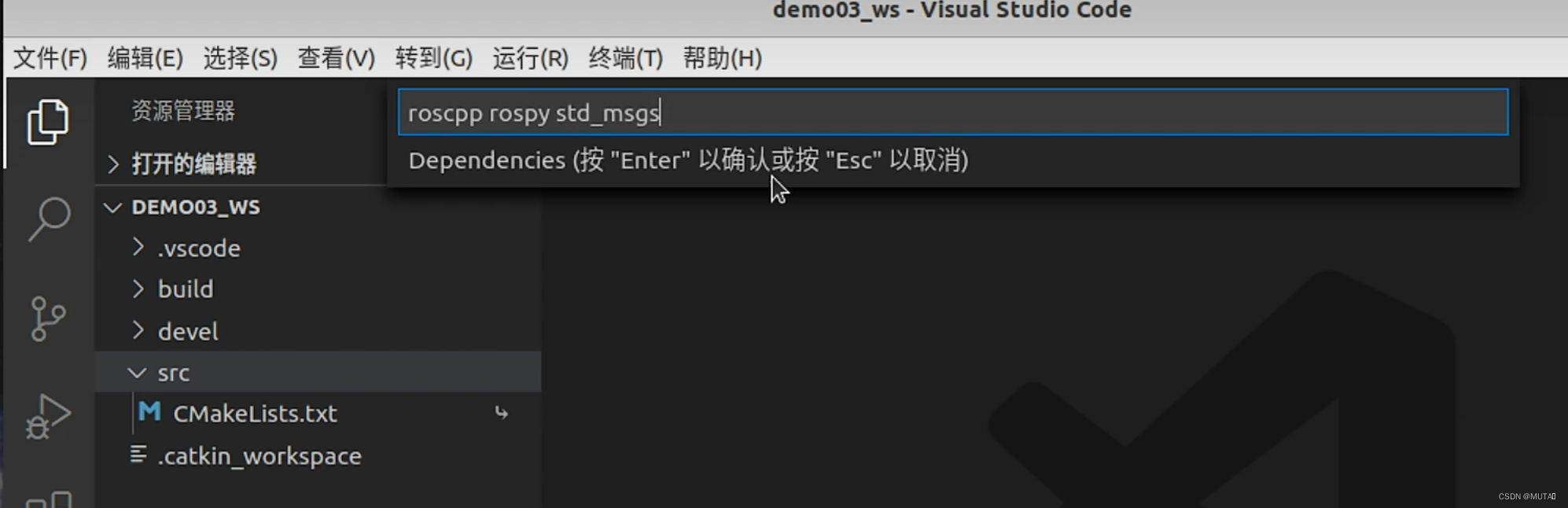 快捷键 ctrl + shift + B 调用编译,选择:catkin_make:build)(要先在vscode上添加扩展:ros)