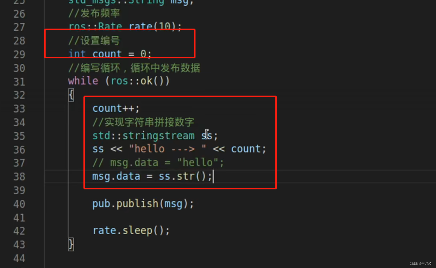 pub.publish(msg)——pub中的publish发布函数;