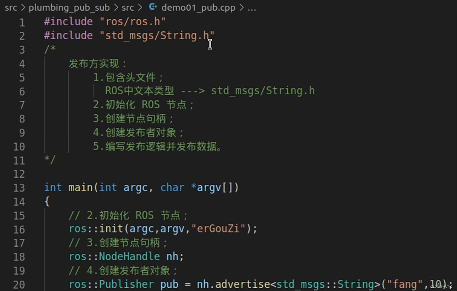 040话题通信(C++)1_发布方框架_Chapter2-ROS通信机制_哔哩哔哩_bilibili