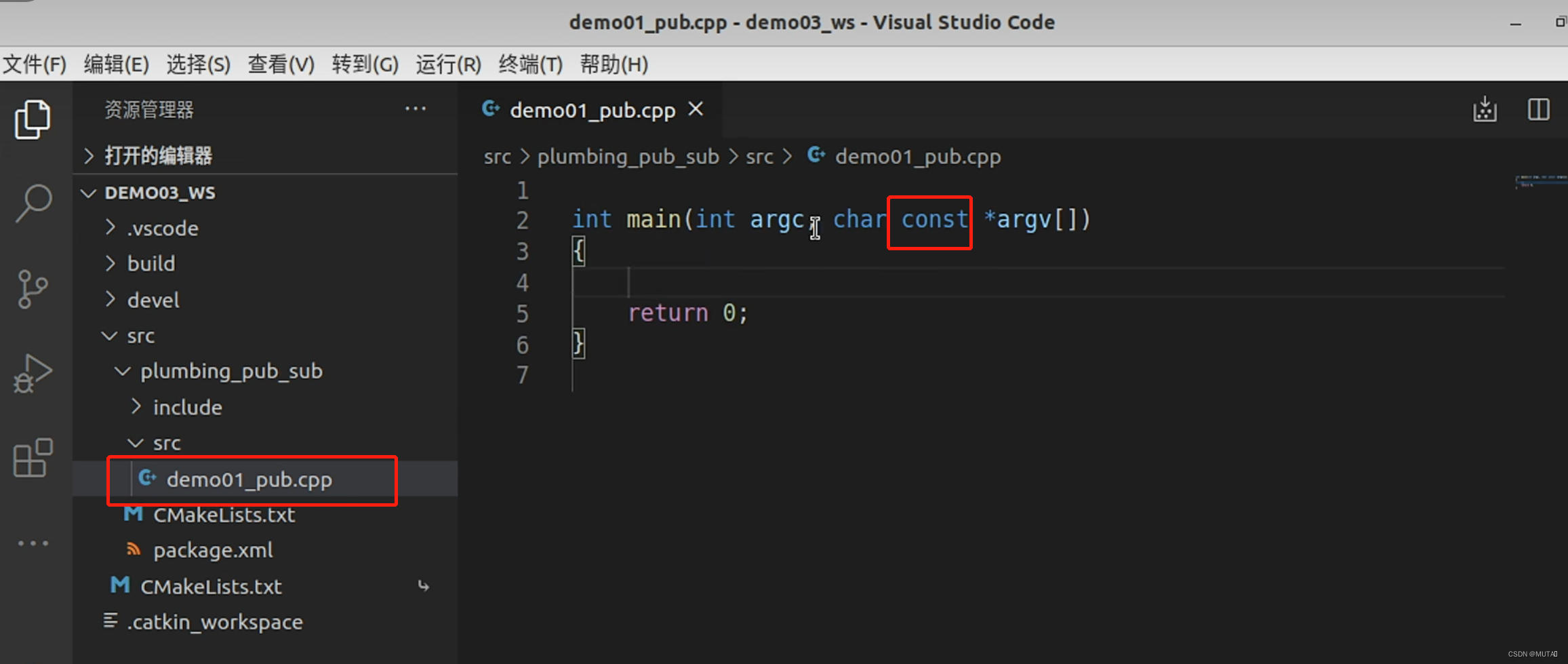 ③新建文件(demo01_pub.cpp),搭建框架