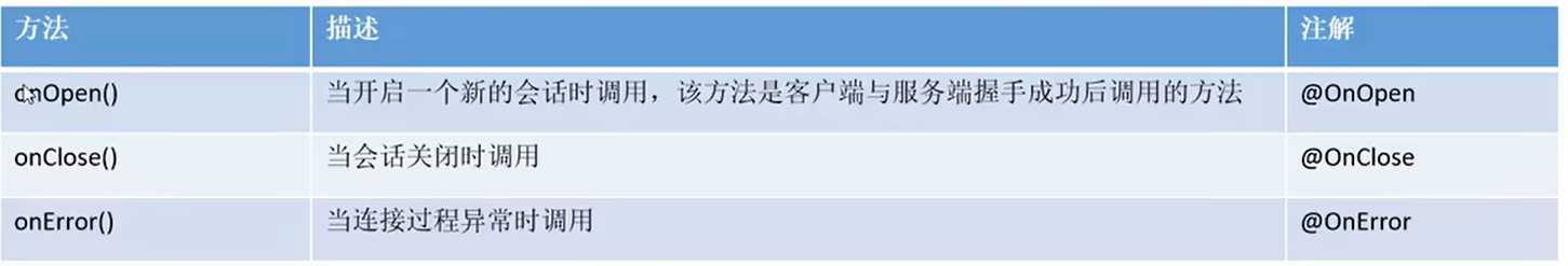 Java WebSocket应用由一系列的Endpoint组成。Endpoint是一个iava对象,代表WebSocket链接的一端,对于服务端,我们可以视为处理具体WebSocket消息的接口。