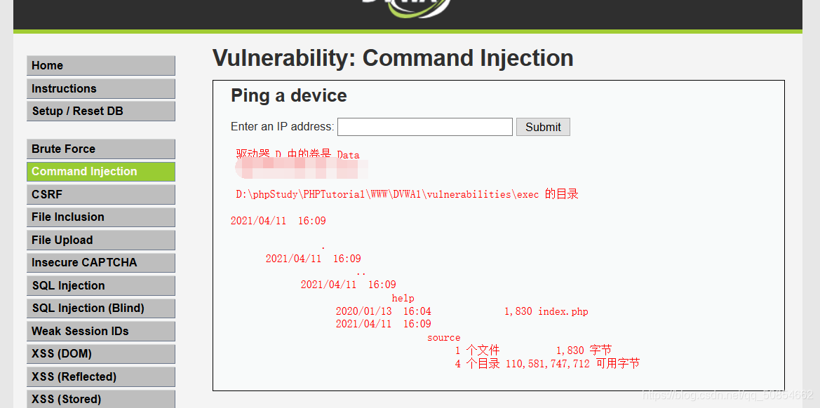 命令注入(Command Injection),对一些函数的参数没有做过滤或过滤不严导致的,可以执行系统或者应用指令(CMD命令或者bash命令)的一种注入攻击手段。PHP命令注入攻击漏洞是PHP应用程序中常见的脚本漏洞之一。