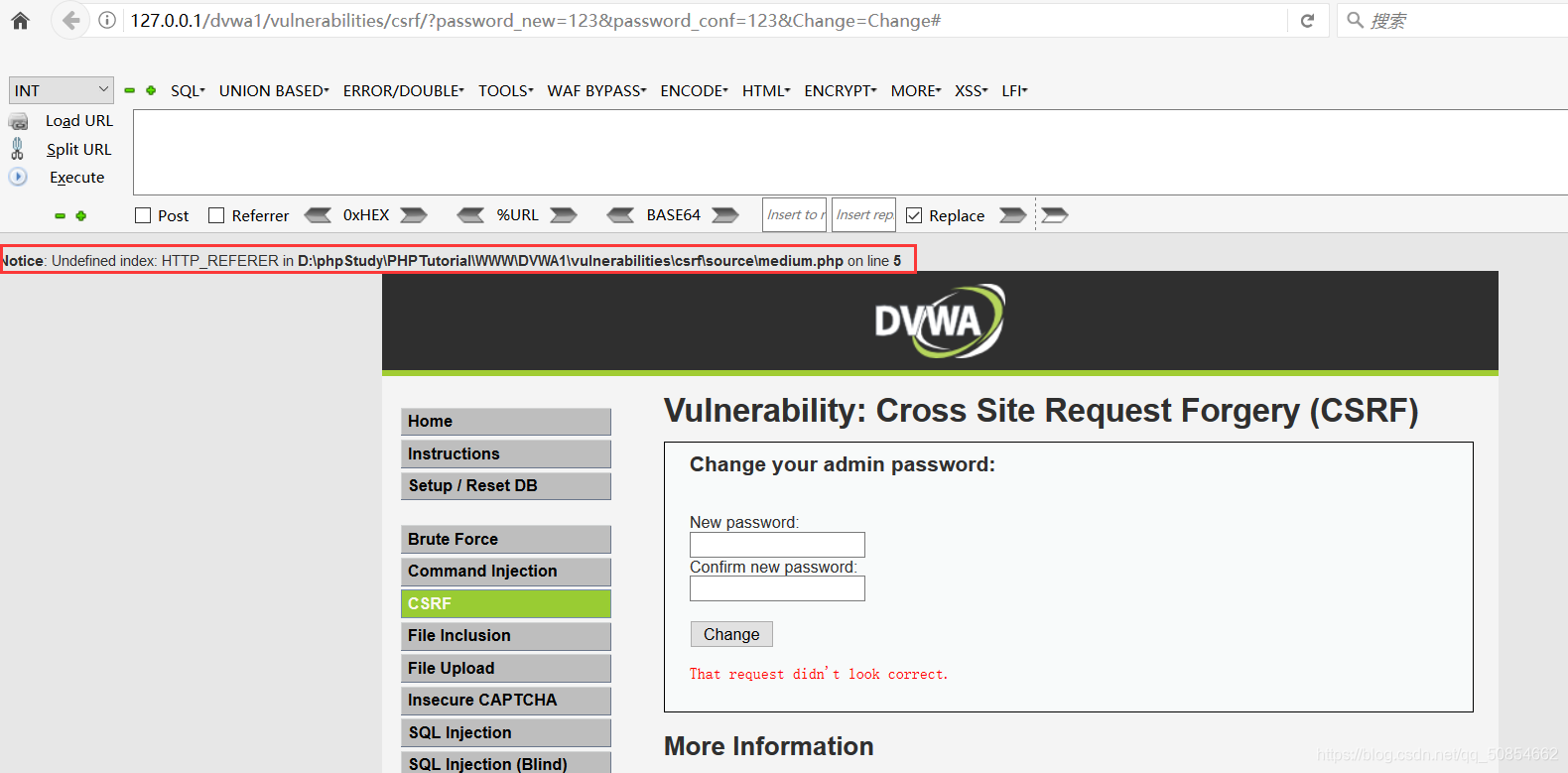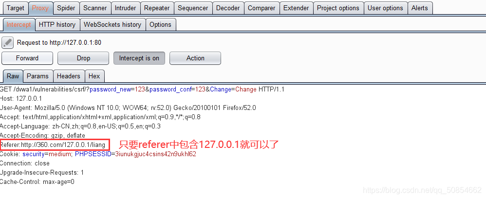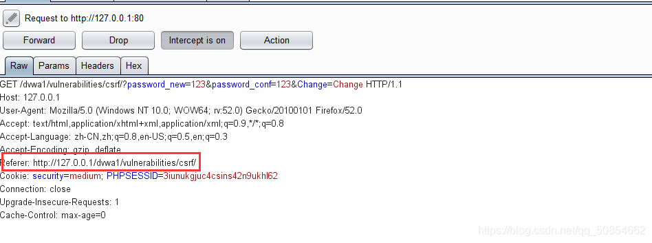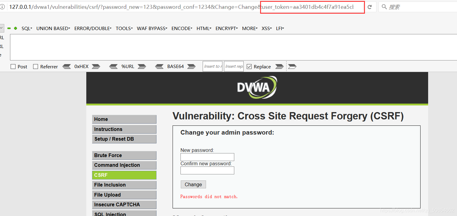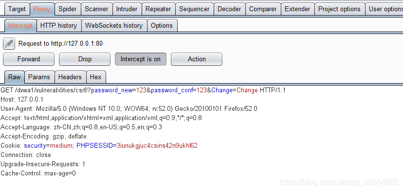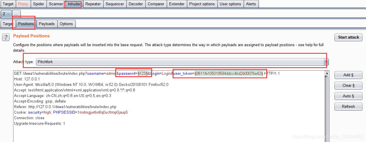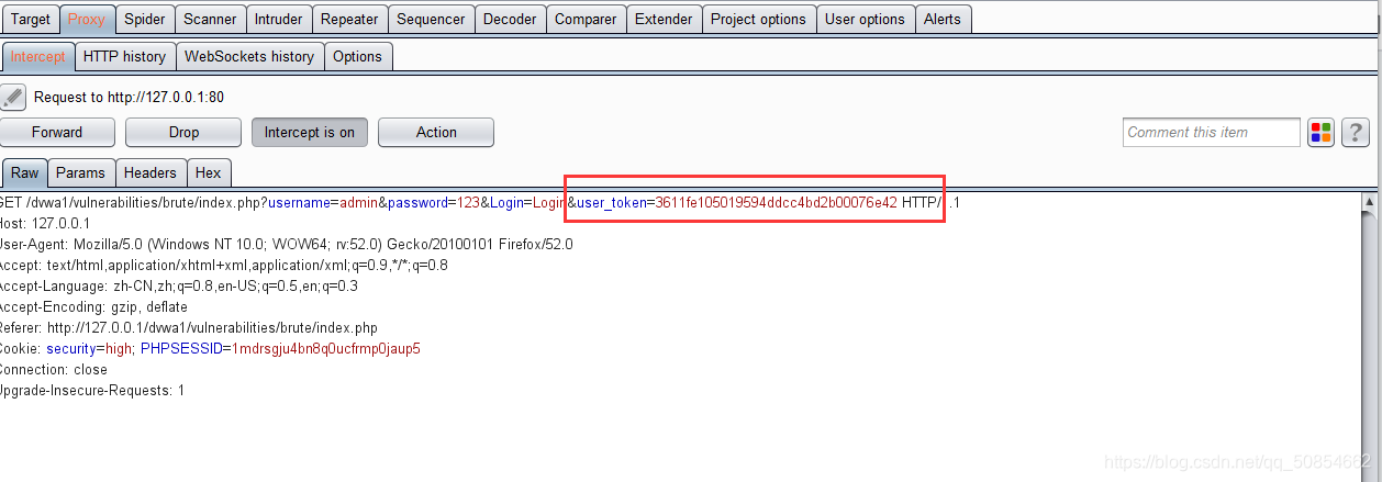 High级别的代码加入了Token,可以抵御CSRF攻击,同时也增加了爆破的难度,通过抓包,可以看到,登录验证时提交了四个参数:username、password、Login以及user_token。