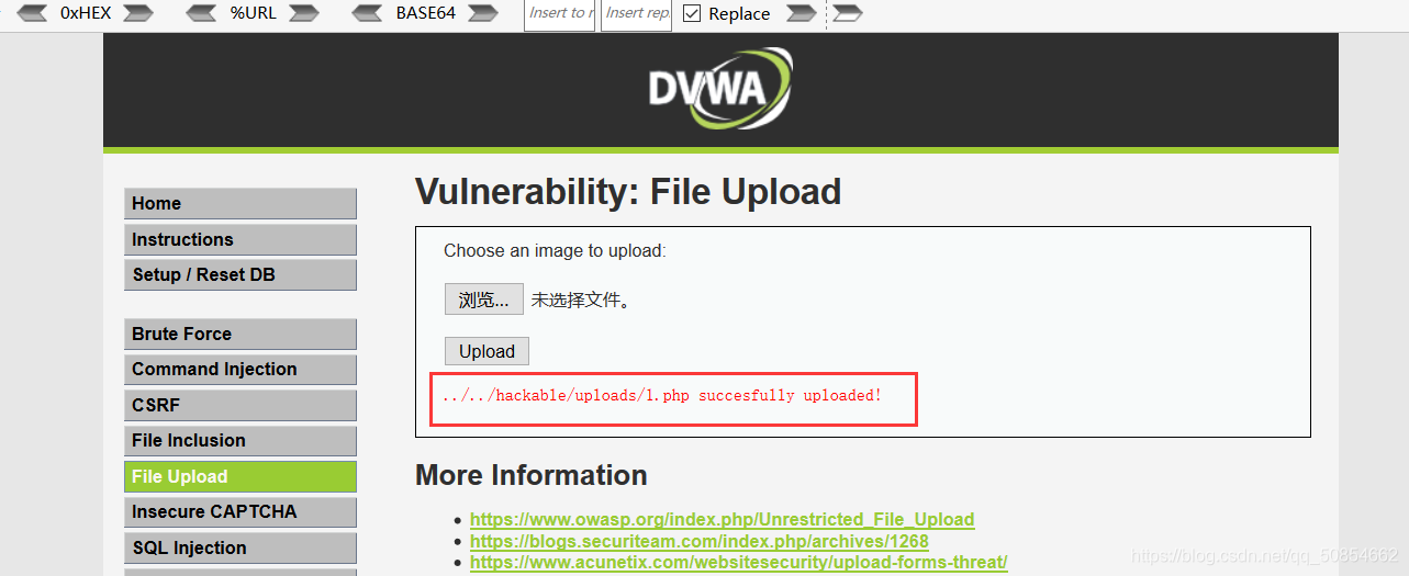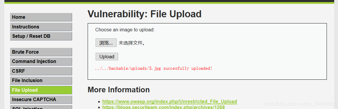 回到刚刚dvwa界面上,上传这个具有一句话木马的图片(图片马)