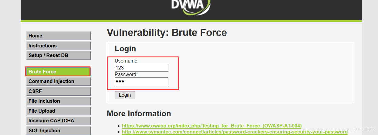 Brute Force即为暴力破解,通过枚举获取管理员的账号和密码,在实际的操作中,一般用来破解后台管理系统的登录。