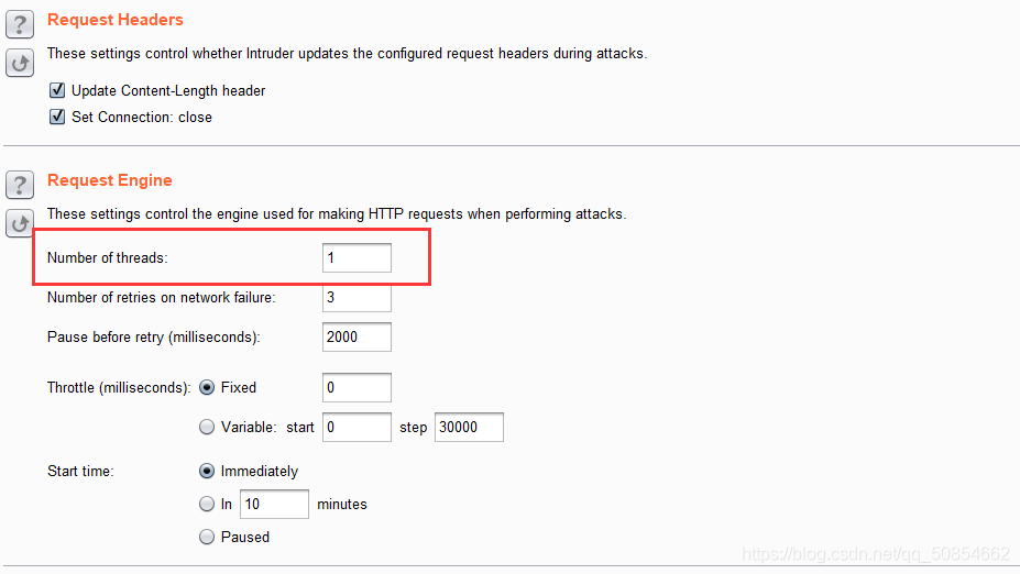 设置参数,在option选项卡中将攻击线程thread设置为1