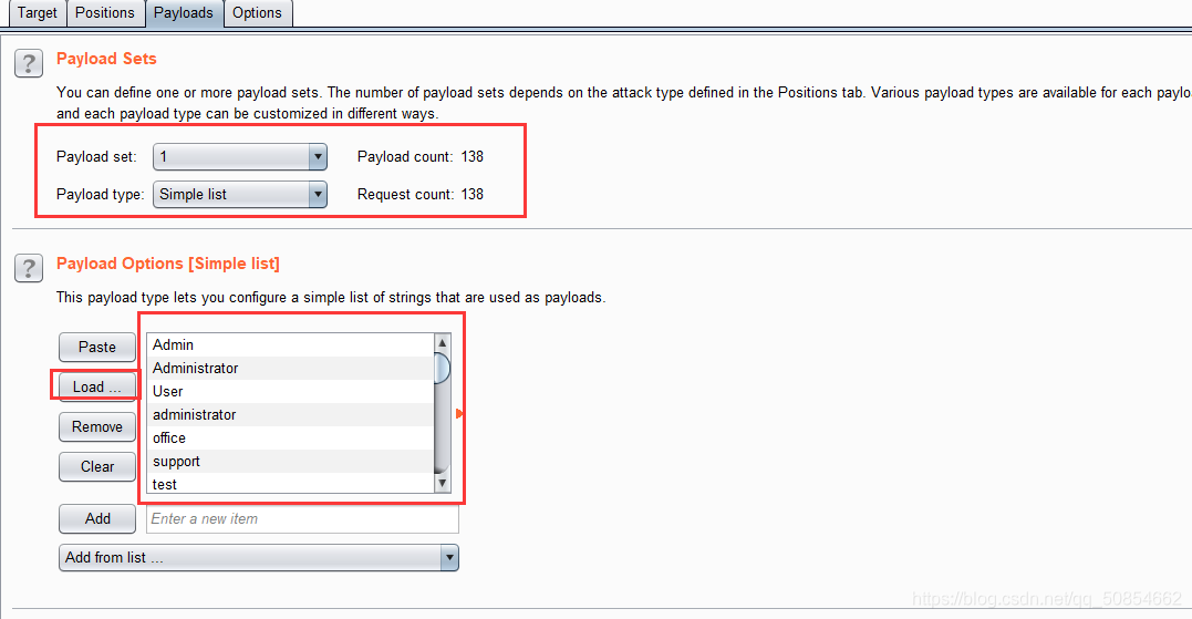 在payloads选择中分别给payload 1和payload 2设置字典路径。