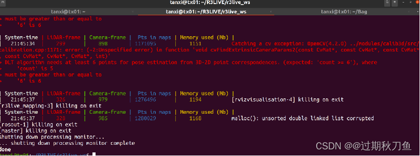 R3LIVE编译运行(自己数据集),用自己的设备实机操作中遇到的一系列问题 第一次写博客,创作不易,还望多多支持。主要记录之前遇到的问题,方便以后查看,主要以R3LIVE为例进行探讨。第一次写博客,希望大家多多支持。最后,总结一下下,实践才是检验真理的唯一标准,只有自己尝试了,才会出现很多别人没有遇到的问题,然后自己上网查资料以及询问其他大佬解决相关问题。
