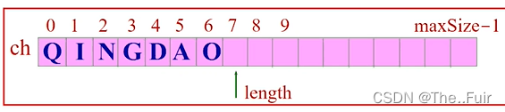 字符串存放于字符数组的0 ~ MAXSTRLEN-1单元,另外用整数length记录串中实际存放的字符个数。