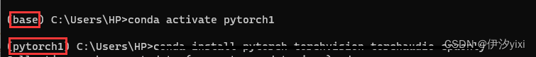 3、输入conda activate pytorch1 进入刚刚新建的pytorch1环境