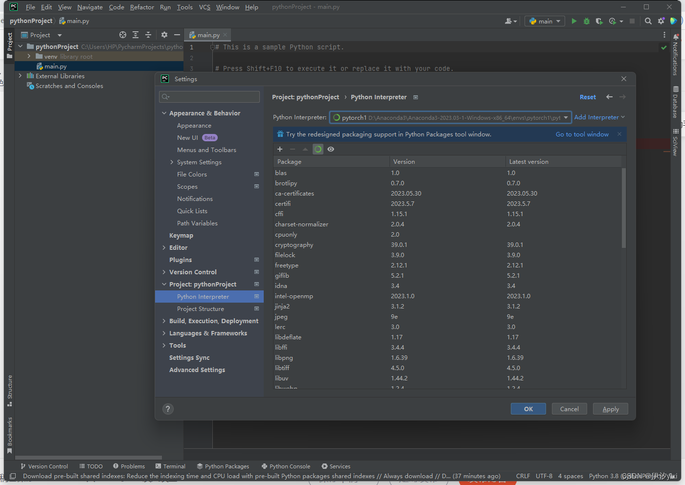 四、pycharm新建项目,并选择上刚刚新建的python编辑器环境pytorch1
