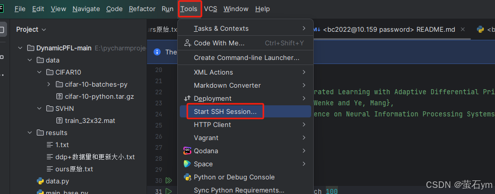 四、连接自己本地pycharm,上传项目到服务器,远程跑实验