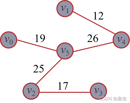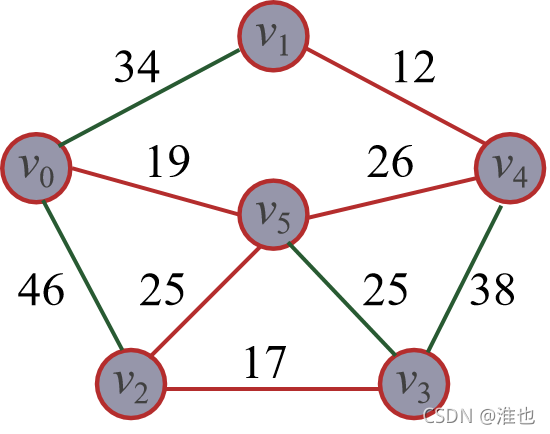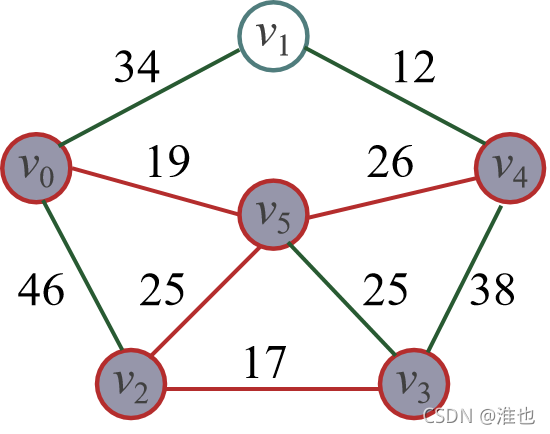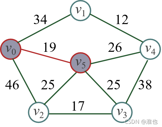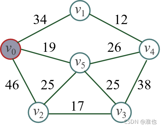 cost={(v0 , v1)34,(v0 , v2)46,(v0, v3)∞,(v0 , v4)∞,(v0, v5 )19}