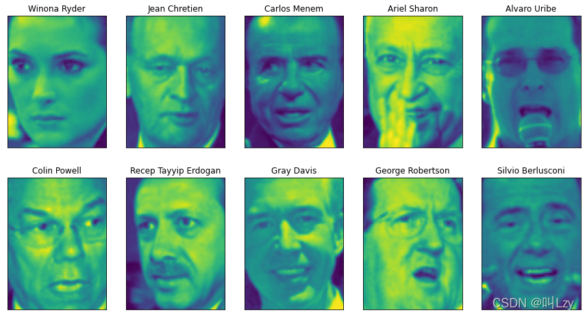 for target, image, ax in zip(people.target, people.images, axes.ravel()):