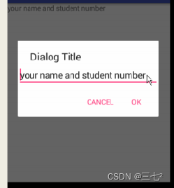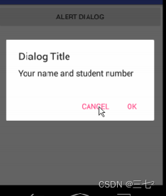 该消息显示您的姓名和学生编号,AlertDialog中有2个按钮,一个表示“OK”,另一个表示”取消“