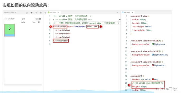 - scroll-view 可滚动的视图区域,常用来实现滚动列表效果