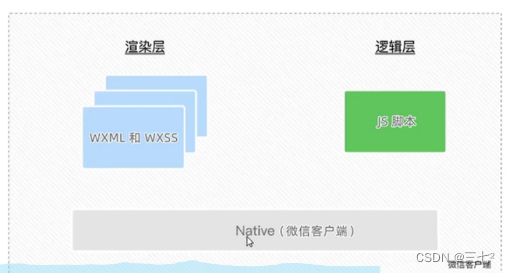 小程序中通信的主体是渲染层和逻辑层,WXML模板和WXSS样式工作在染层,JS脚本工作在逻辑层