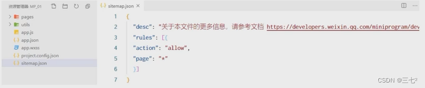 sitemap,json 文件用来配置小程序页面是否允许微信索引。